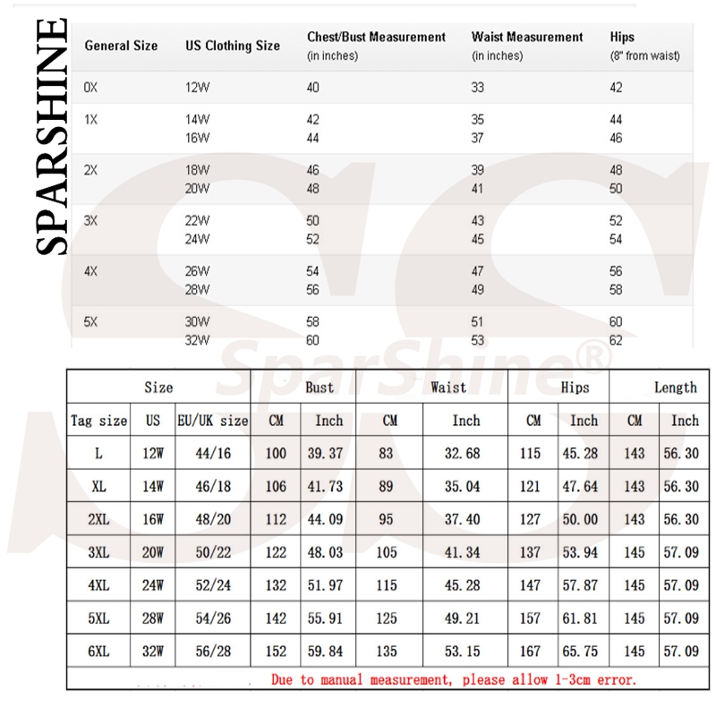 sparshine size chart