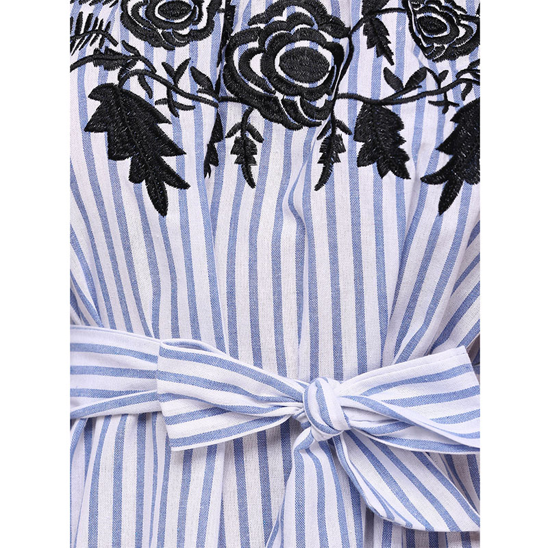 AZULINA Casual Blue Striped t shirt summer Dress Women Off the Shoulder Floral Embroidery Sexy Beach Midi Dress Sundress 2017