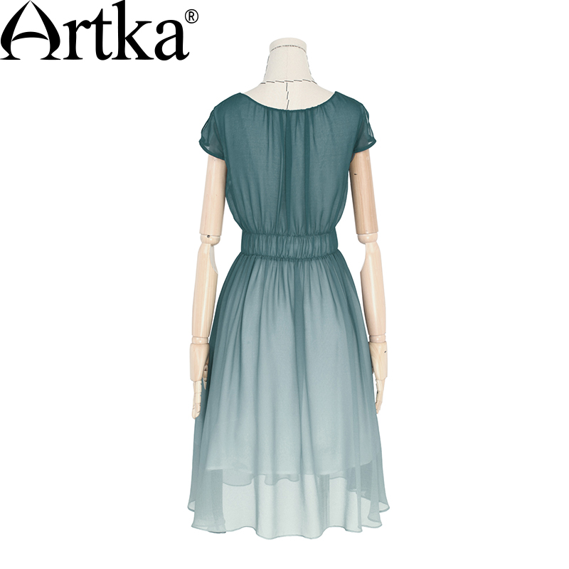 Artka Women's Summer New Gradient Color Chiffon Dress Elegant O-Neck Short Sleeve Empire Waist A-Line Dress LA11660X