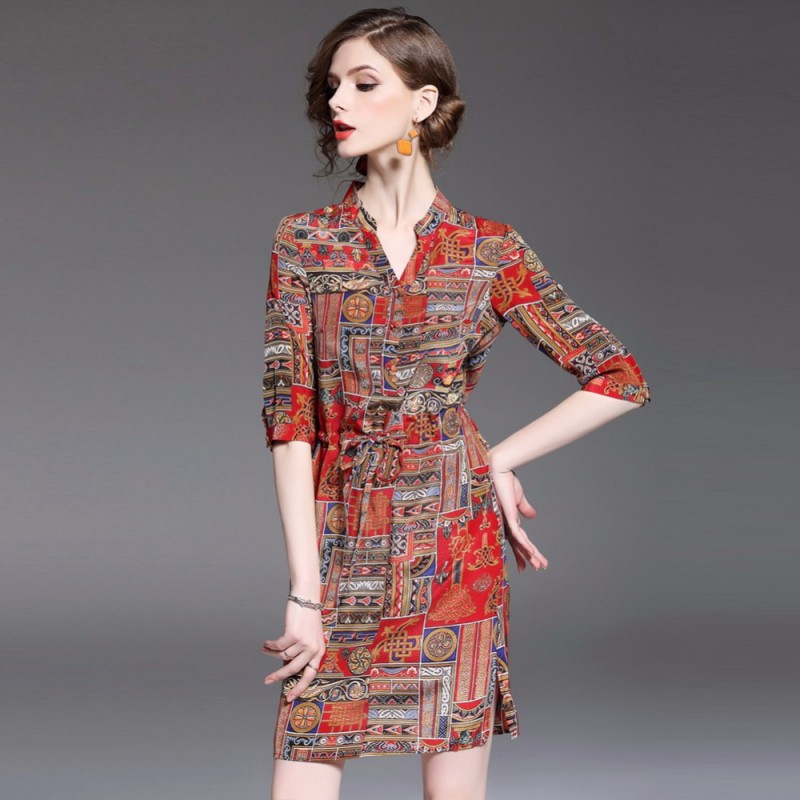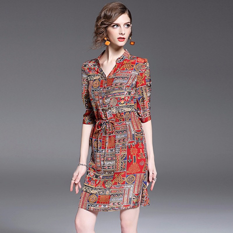 Bamskarosa New Beach Tunics Women Boho Dress 2017 Summer Sundress Sexy Lady Tunic Dress Elegant Retro Print Vestidos Mujer