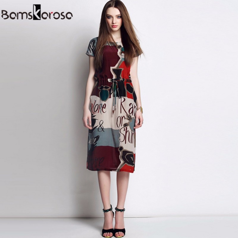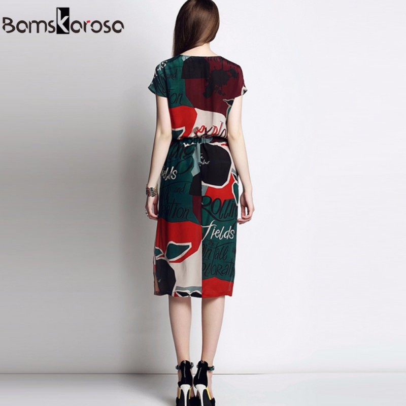 Bamskarosa New Fashion Summer Dress 2017 European Hit Color Print Light Soft Comfort Women Chiffon Casual Sundress Vestido Mujer