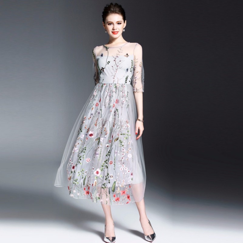 2017 Mesh Embroidery Dress