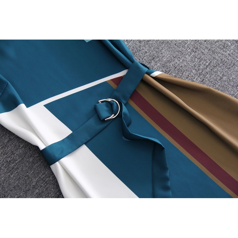 Designer Runway Dress High Quality 2017 Spring Summer Women Short Sleeve O-Neck Block Color Side Split Belt Dress SAD360