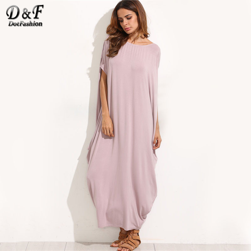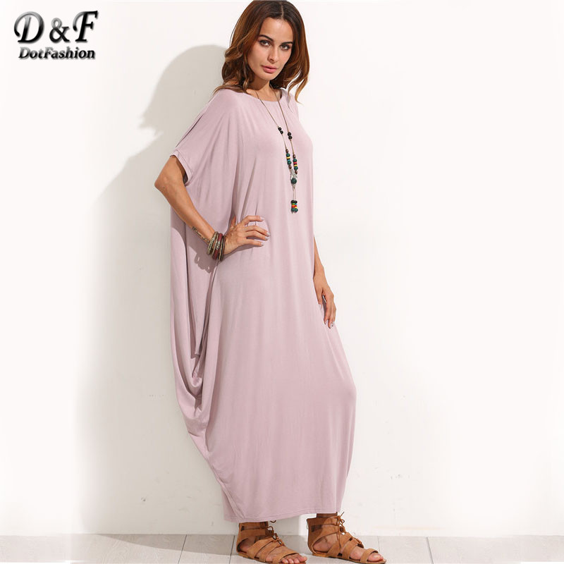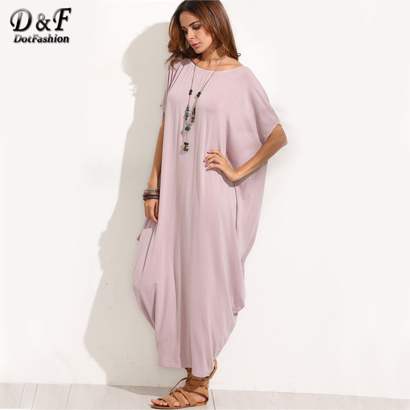 Dotfashion New Dress 2017 for Women Casual Dresses High Quality Women Fashion Dress Pale Purple Dolman Sleeve Maxi Dress