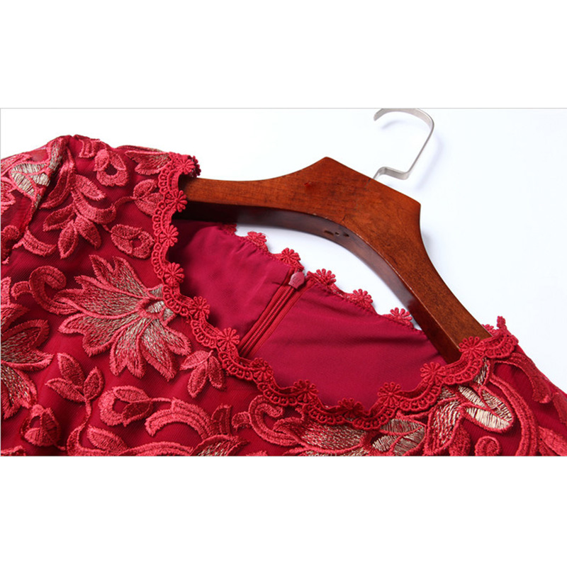 Elegant Crochet Floral Lace Embroidery Dress Women 2017 Spring Office Party Dresses Bodycon Vestido plus size 3/4 Sleeve