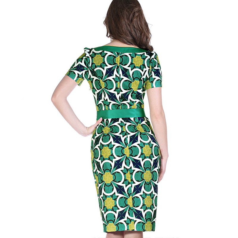Elegant Summer Women Dress 2016 Short Sleeve Pencil Bodycon Dresses Women New Arrival Fashion Print Green Women Vestido Clothing