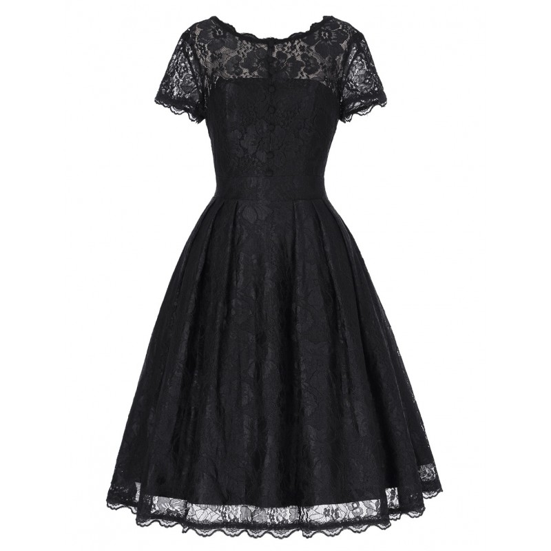 Fashion Summer Dress Women Rockabilly Vestidos Crew Neck Real Picture Elegant Black Lace Dress for Ladies Vintage Dresses