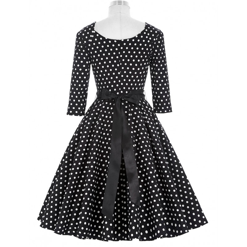 Female 3/4 Or Full Sleeve Summer Dress Autumn Spring Women Elegant Vintage Rockabilly Polka Dot Print Swing Party Dresses 2016