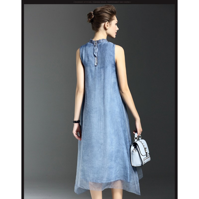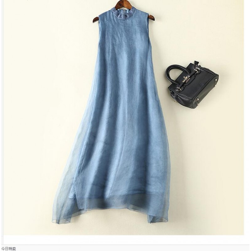 Free Shipping Fashion 2017 Spring Summer New Women Dress Sleeveless Pink Blue Color Slim Designs Casual