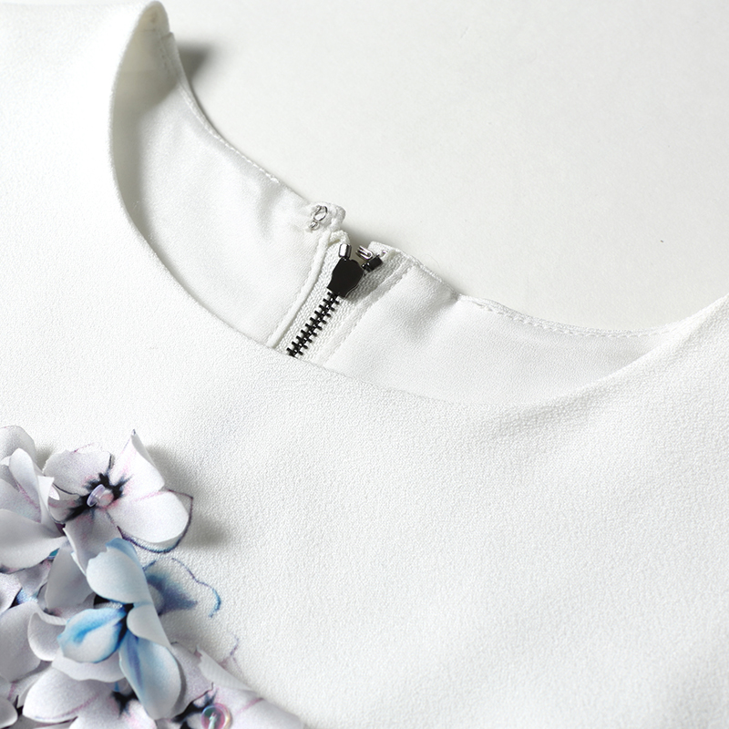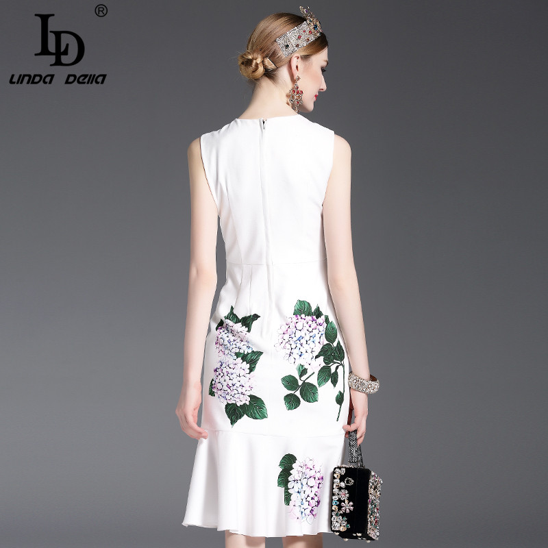 High Quality 2017 Designer Runway Summer Dress Women's elegant Mermaid Sleeveless Whiter Floral Printed Appliques Casual Dress