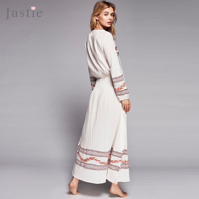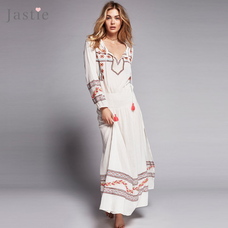 Jastie Ladies Embroidered Shirt Top Loose Long Sleeve V-Neck Sexy Boho Hippie Chic Blusas Fashion Women Tops 2017 Clothing
