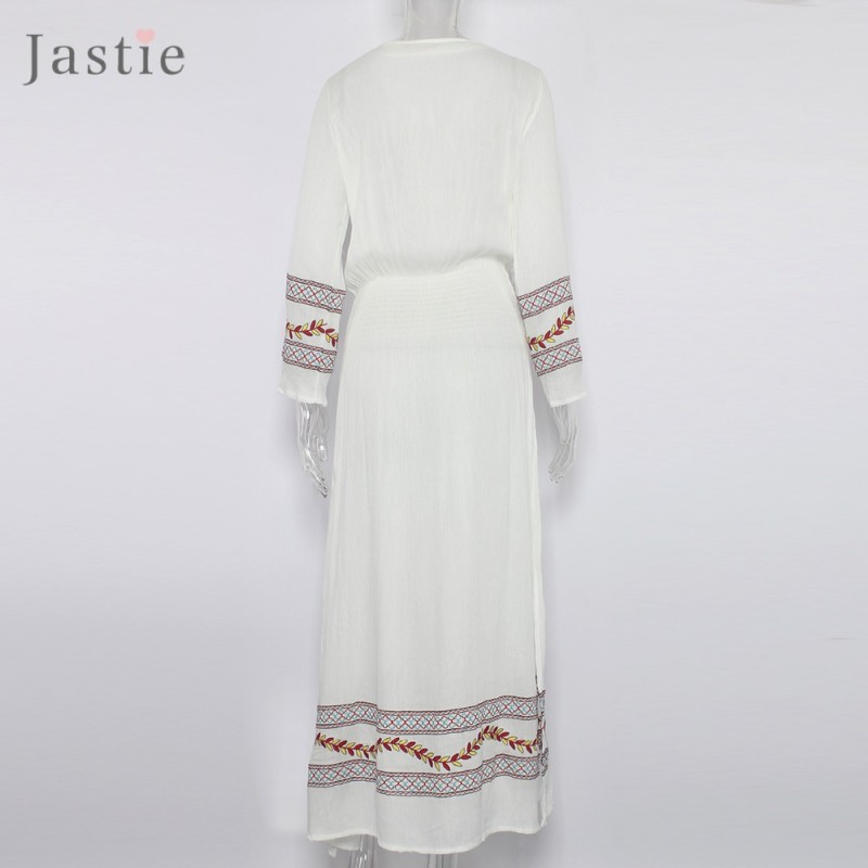 Jastie Mystical Maxi Dress Colorful Embroidery Women Dress Long Sleeve Elastic Waist Boho Vestidos V-Neck Side Slits Sexy Dress