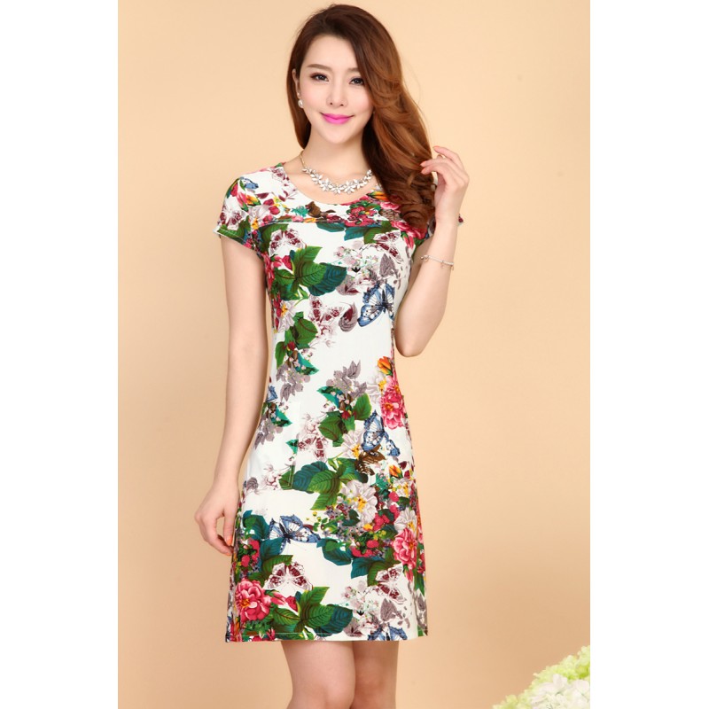 L-5XL summer style 2017 women dress Silk printed plus size vestido feminino womens clothing loose casual dresses