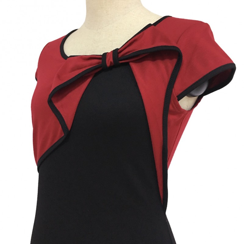 2017 Women Summer Elegant Vintage Asymmetric Bow Pinup Red Blue Patchwork Casual Wear to Work Business Party Pencil Sheath Dress