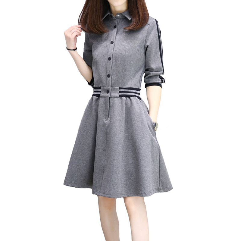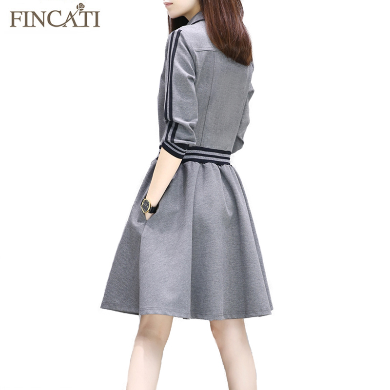 Spring Summer Dress Women 2017 Fincati New Turn-Down Collar Black Stripes Full Sleeve Sweatshirt Dresses Vestidos de Festa