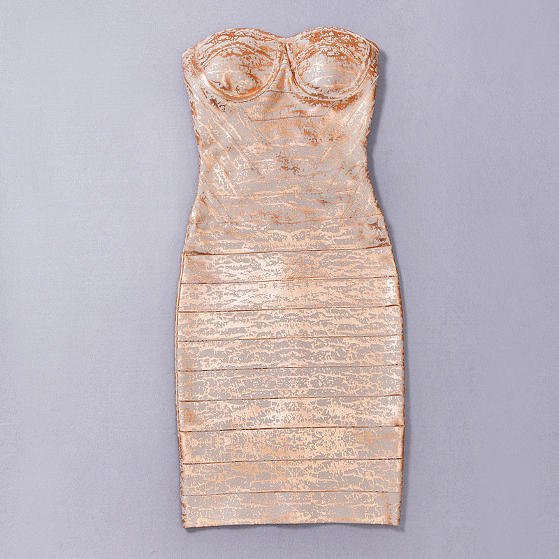 Summer Clearance High Quality!!!Ocstrade New Arrival Woman Fashion 2017 Crackled Metallic Pink Strapless Bandage Dress