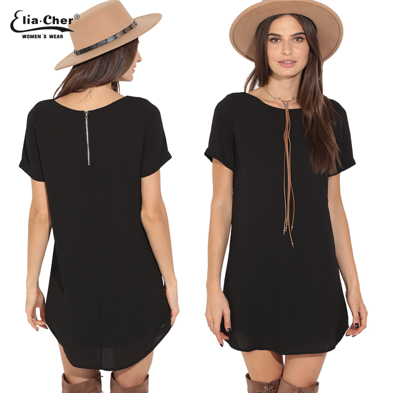Summer Dress women dress Eliacher Brand Plus Size Casual Female clothing Solid and Loose dresses Short O-Neck