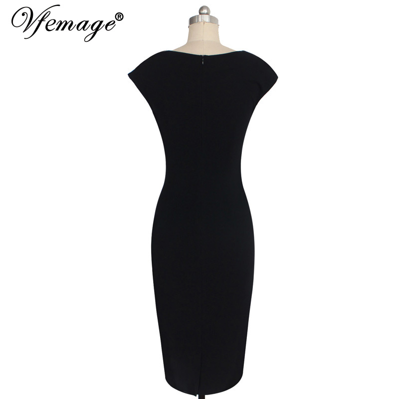 Vfemage Womens Elegant Floral Printed Zig Zag Contrast Colorblock Cap Sleeve Charming Slim Casual Party Pencil Sheath Dress 3018