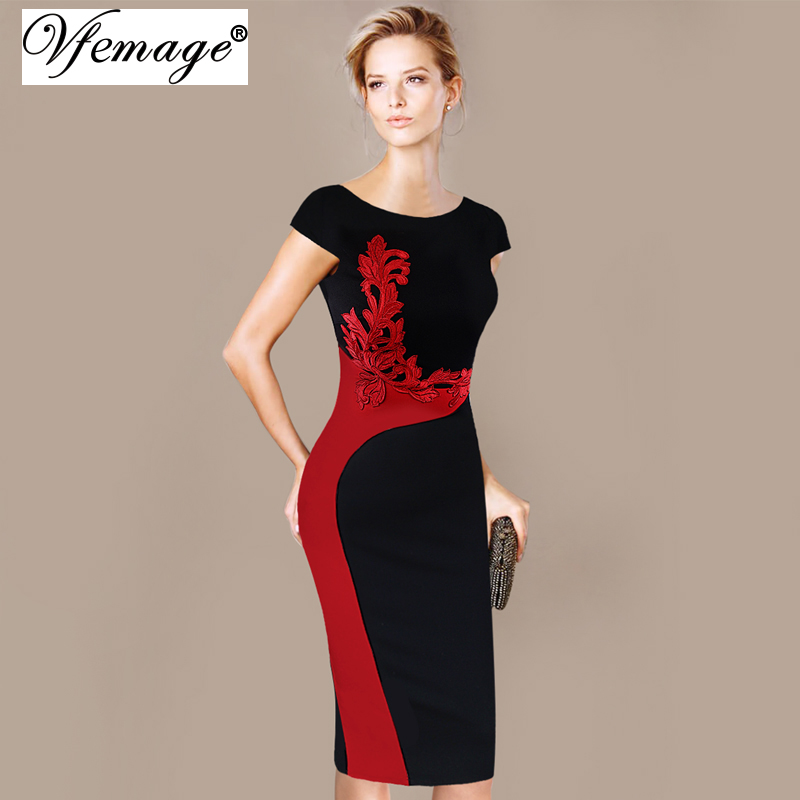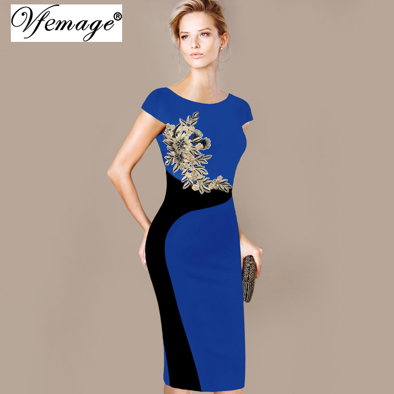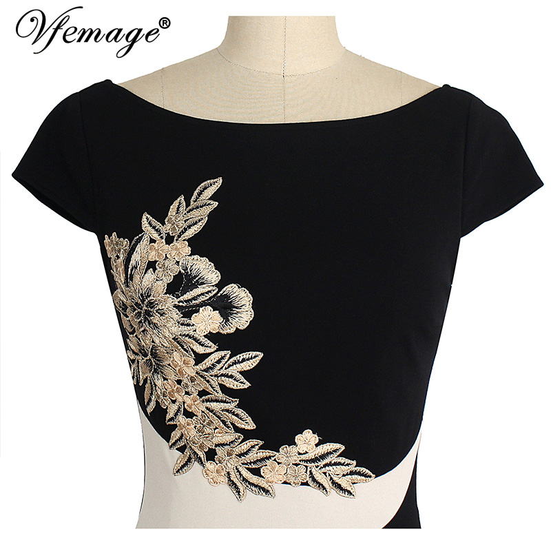Vfemage Womens Elegant Vintage Embroidered Contrast Slim Casual Work Special Occasion Party Pencil Sheath Embroidery Dress 3973