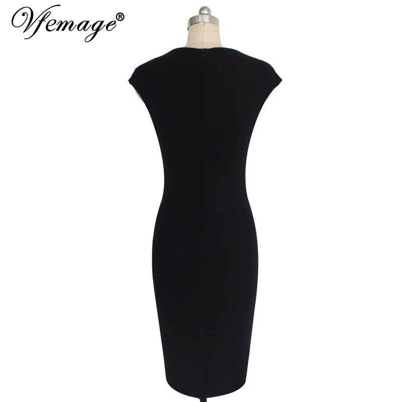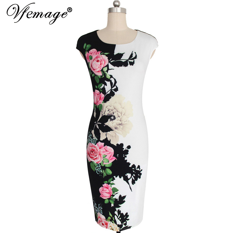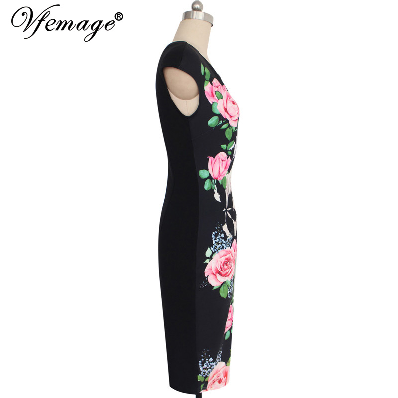 Vfemage Womens Elegant Vintage Flower Floral Printed Contrast Patchwork Slimming Vestidos Casual Party Sheath Bodycon Dress 3091