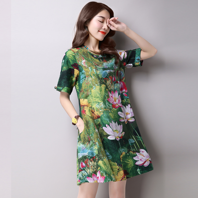 hot-sale-2016-new-fashion-plus-size-women-dress-slim--short-sleeved-Lotus-print-female-printing-dres-32684407719