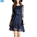 women summer chiffon dresses dark blue mini dress party dresses casual print mesh dressUSD 21.00/piece