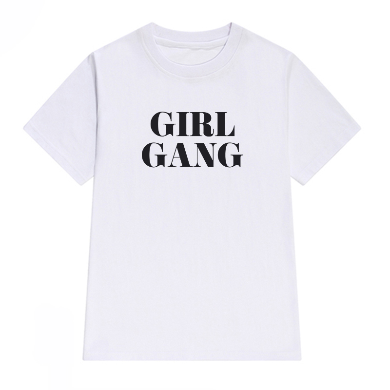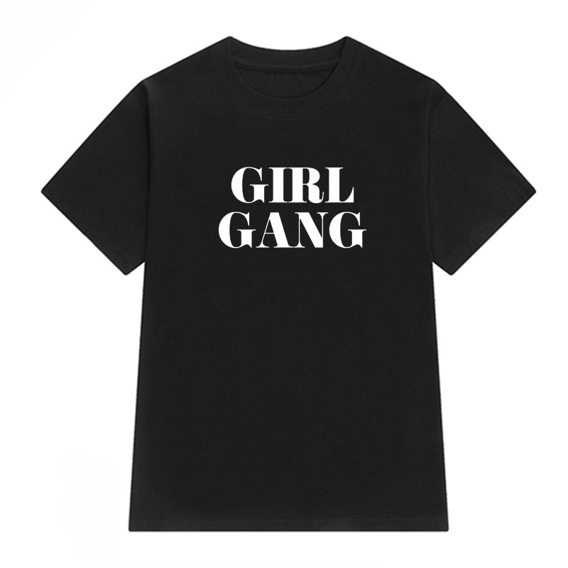 GIRL GANG print Best friend t shirt femme black white large size cotton women tshirt tops loose casual women t-shirt S-2XL