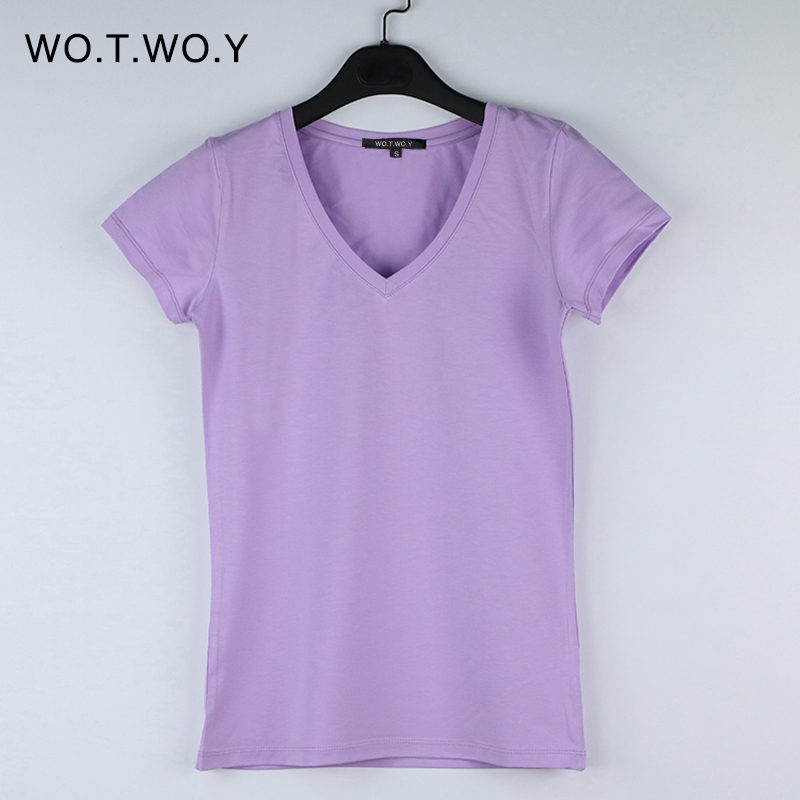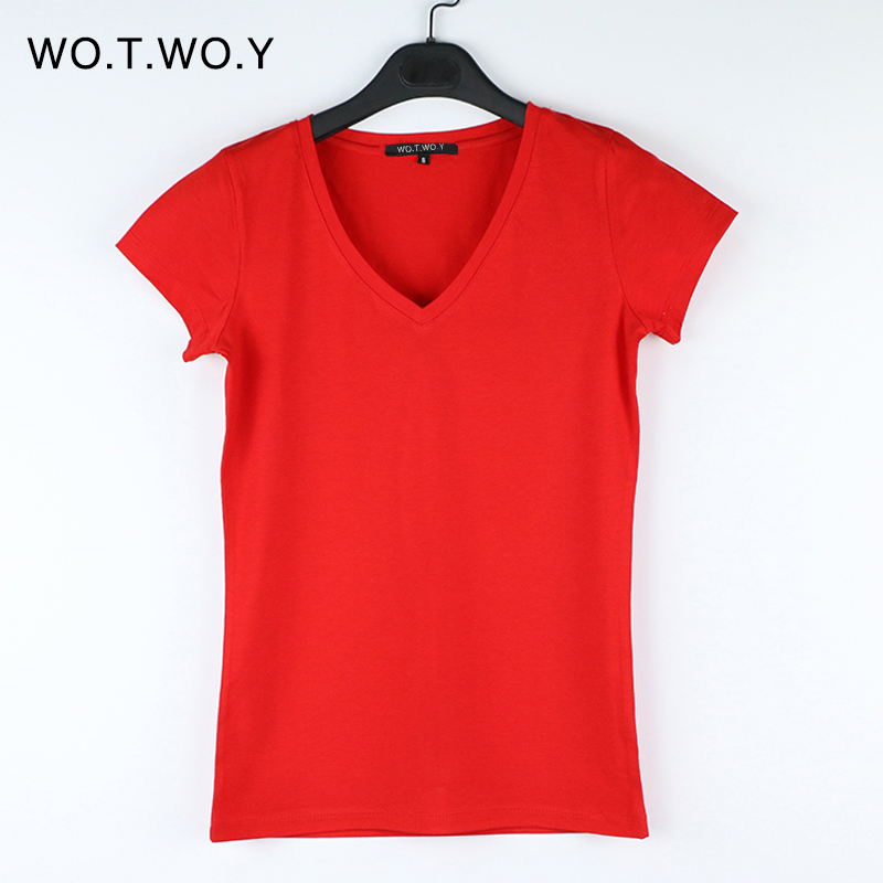 High Quality V-Neck 15 Candy Color Cotton Basic T-shirt Women Plain Simple T Shirt For Women Short Sleeve Female Tops 077
