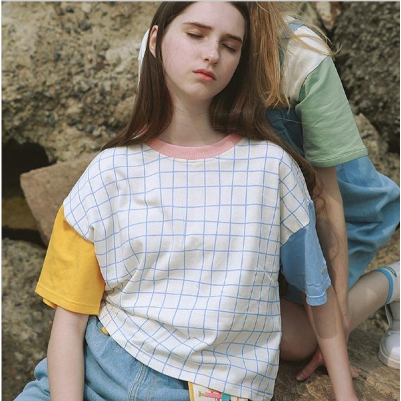 Merry Pretty New Summer Women Letter Embroidery Plaid t shirt Fashion Patchwork Design T shirts Short Sleeve Casual Cotton Tops